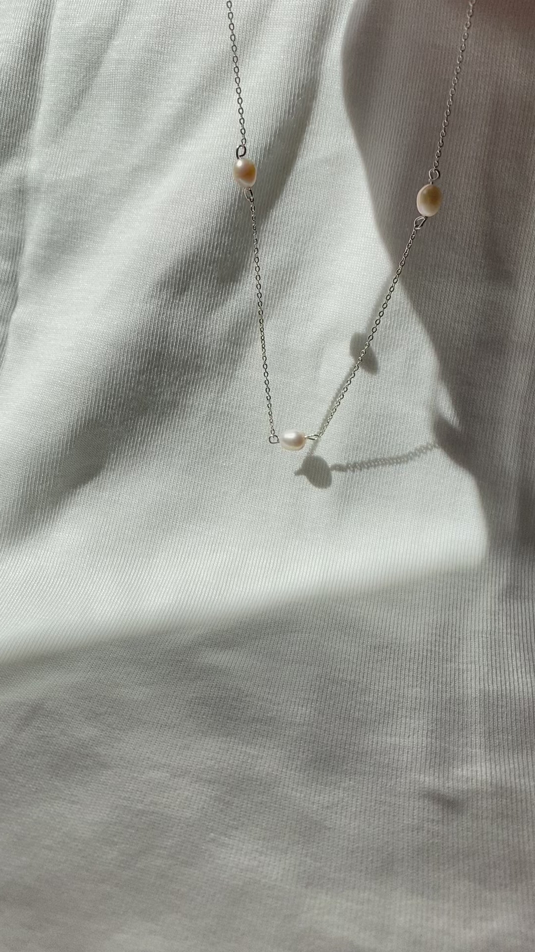 Vibrant, minimal pearls. Sterling silver chain with AAA-rated rice pearls. Silver lobster clasp.
