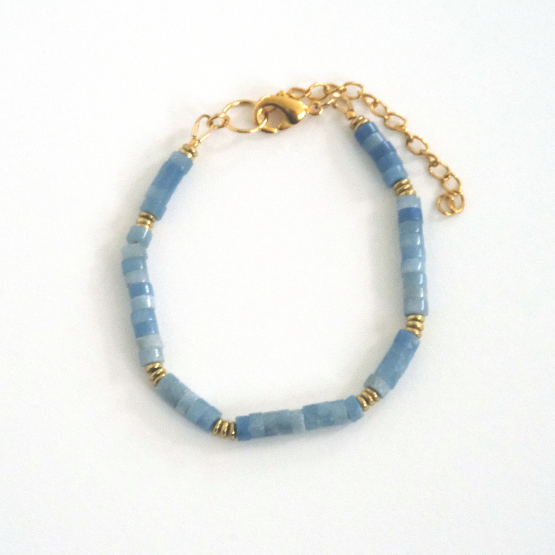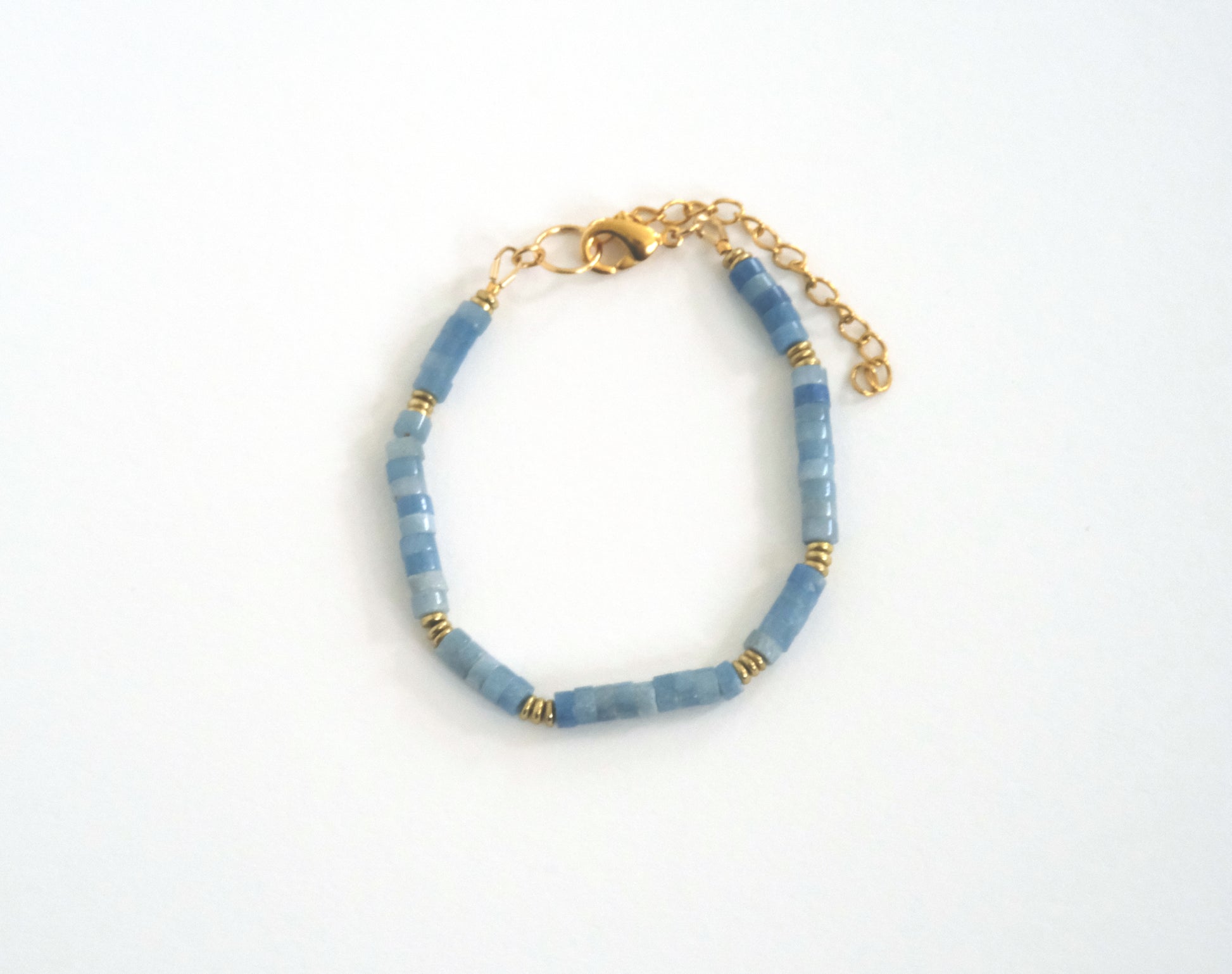 Blue aventurine and gold beads. Gold plated lobster clasp.