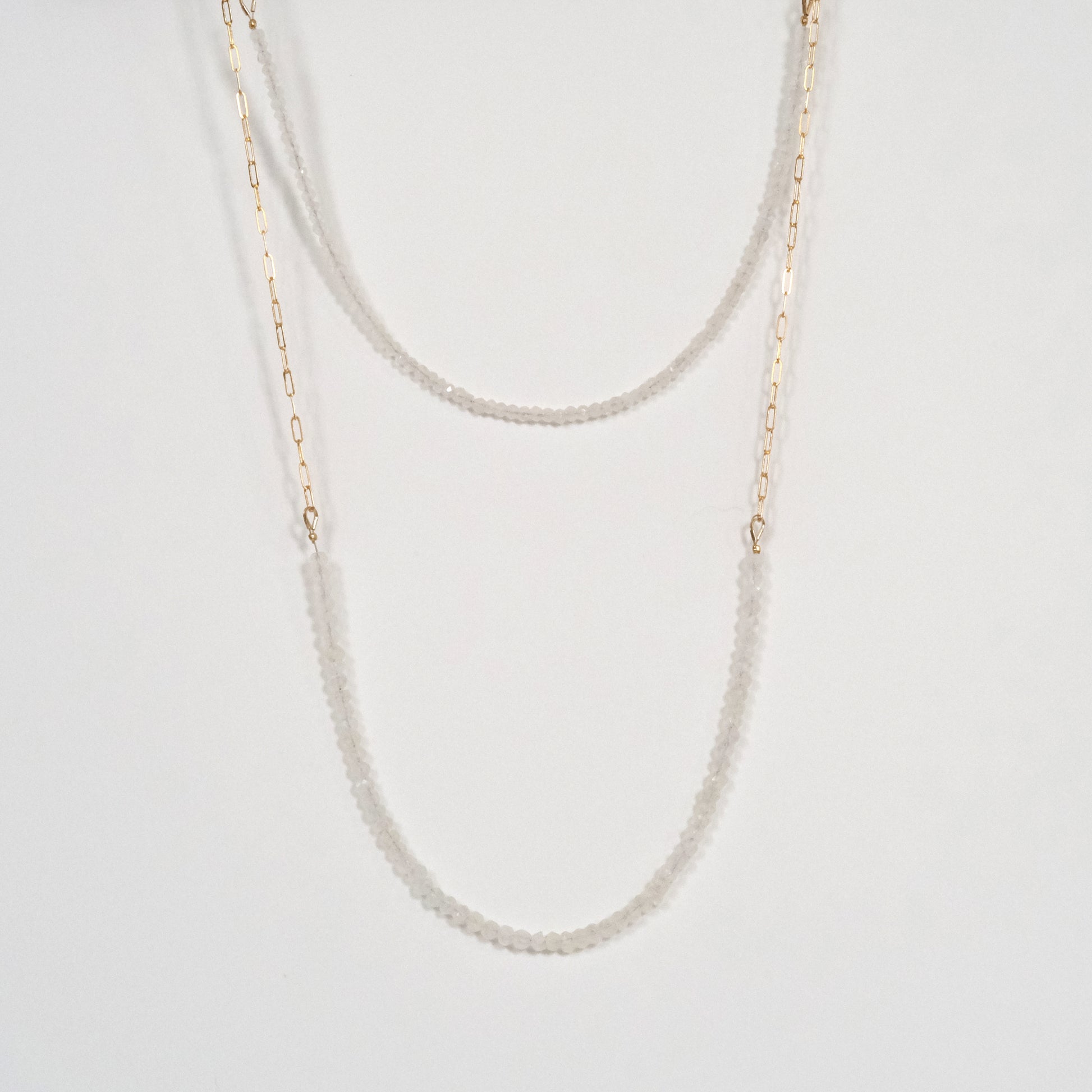 Faceted moonstones on 14k gold paperclip chain. Necklaces can be purchased together or on their own.