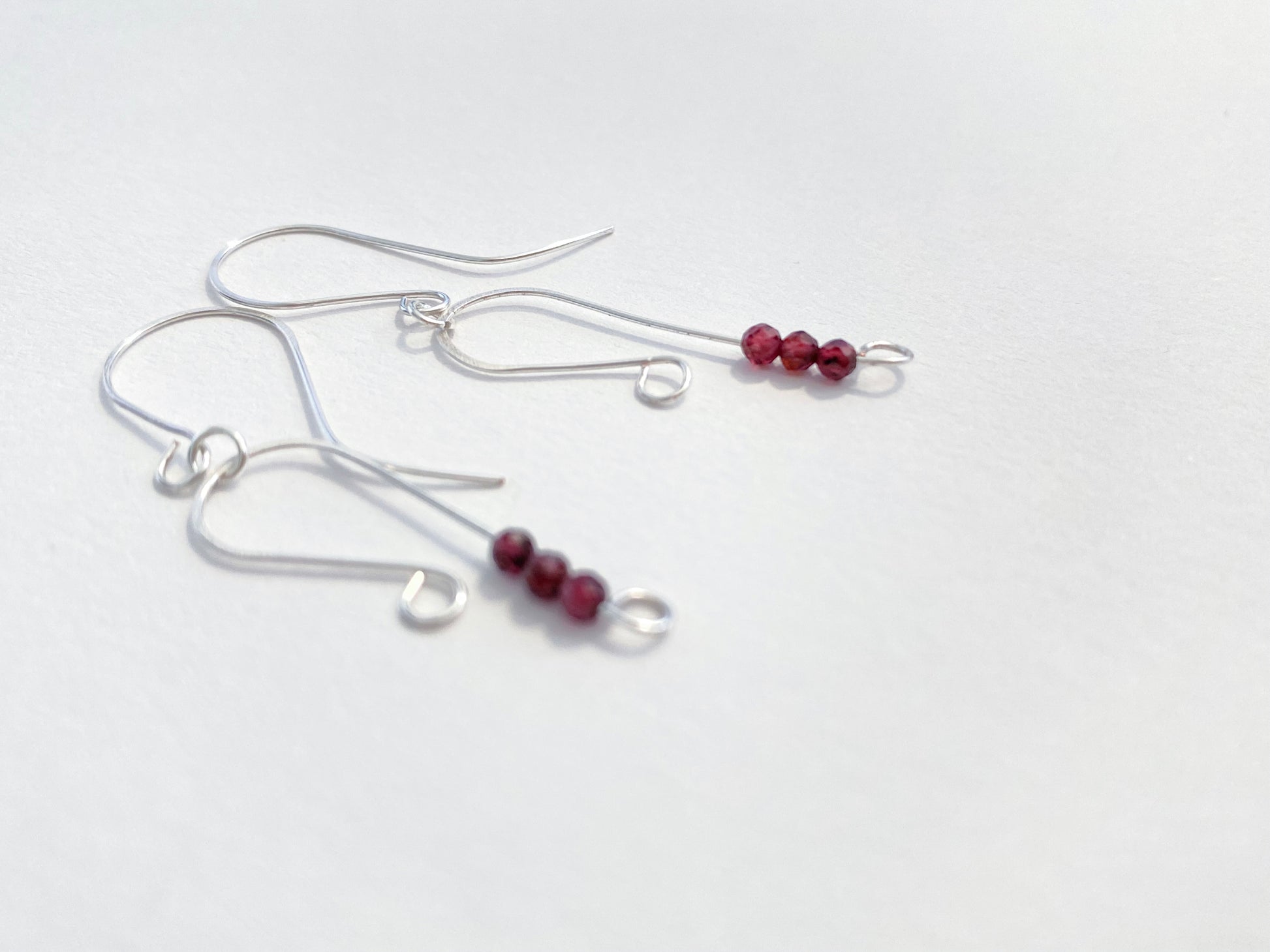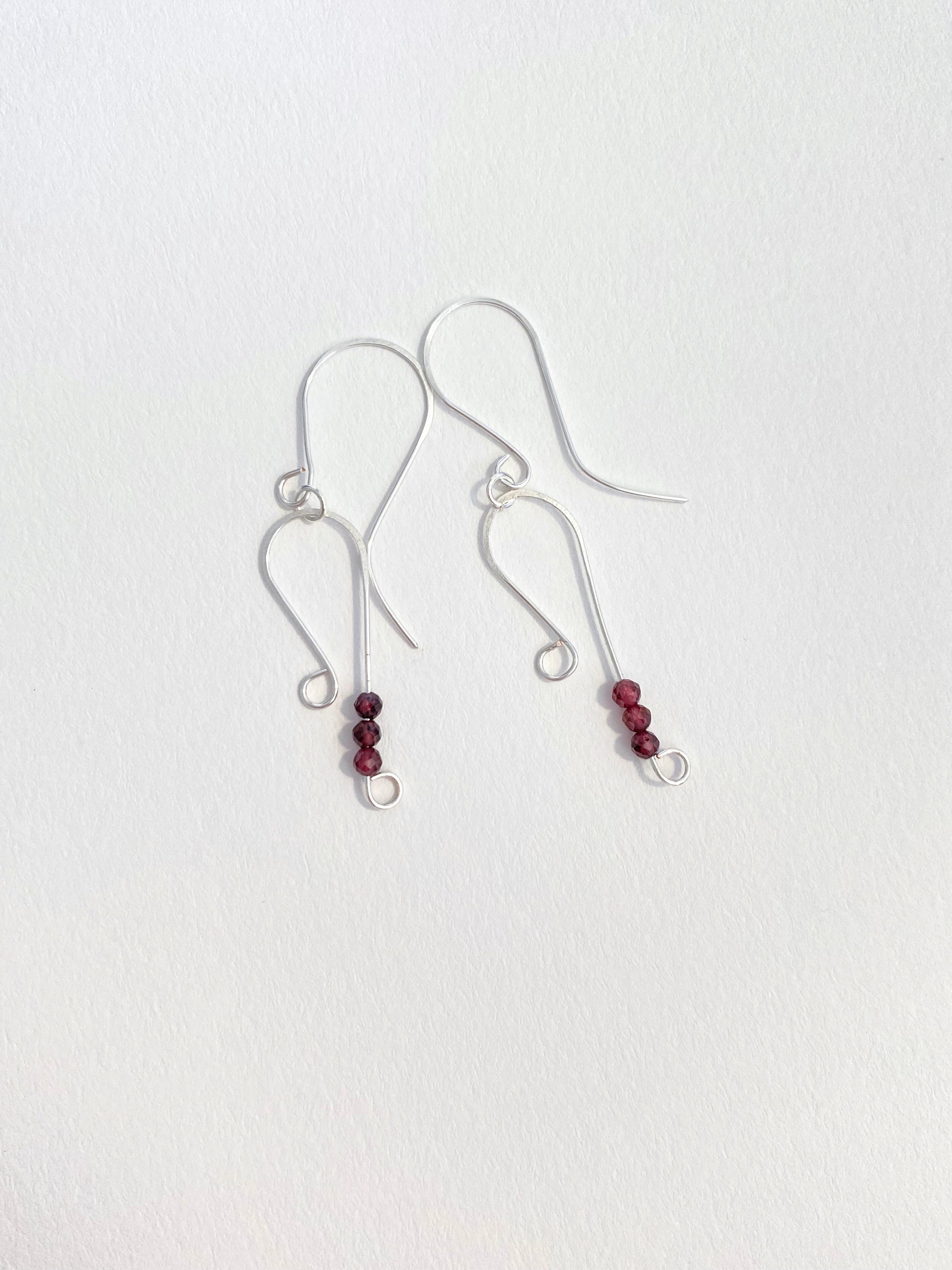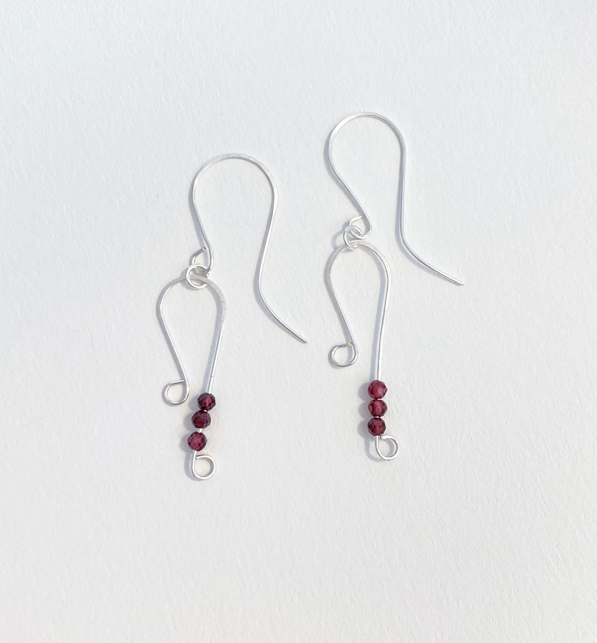 Silver plated wire and delicate natural garnet.