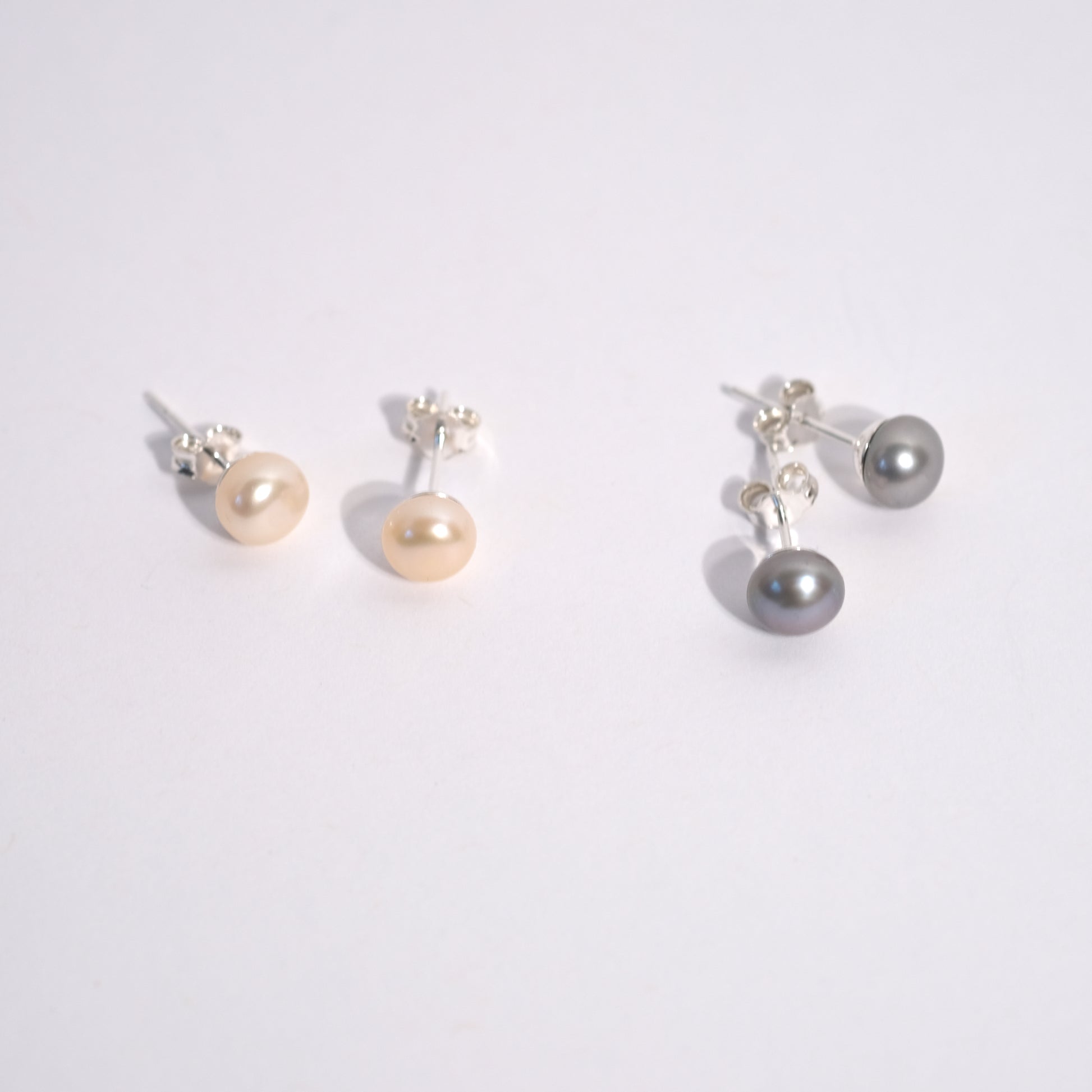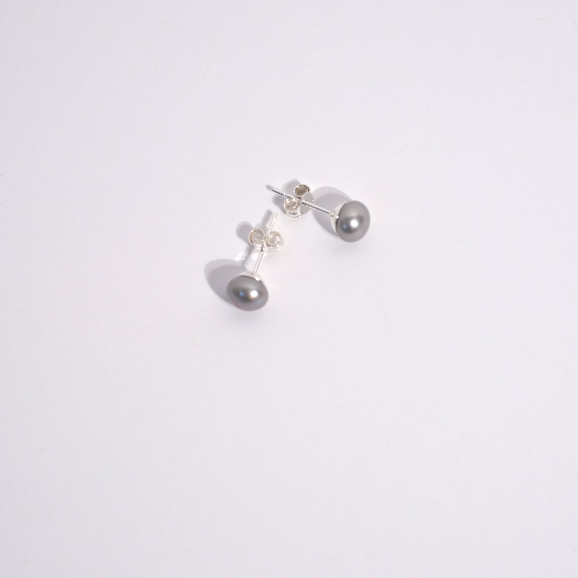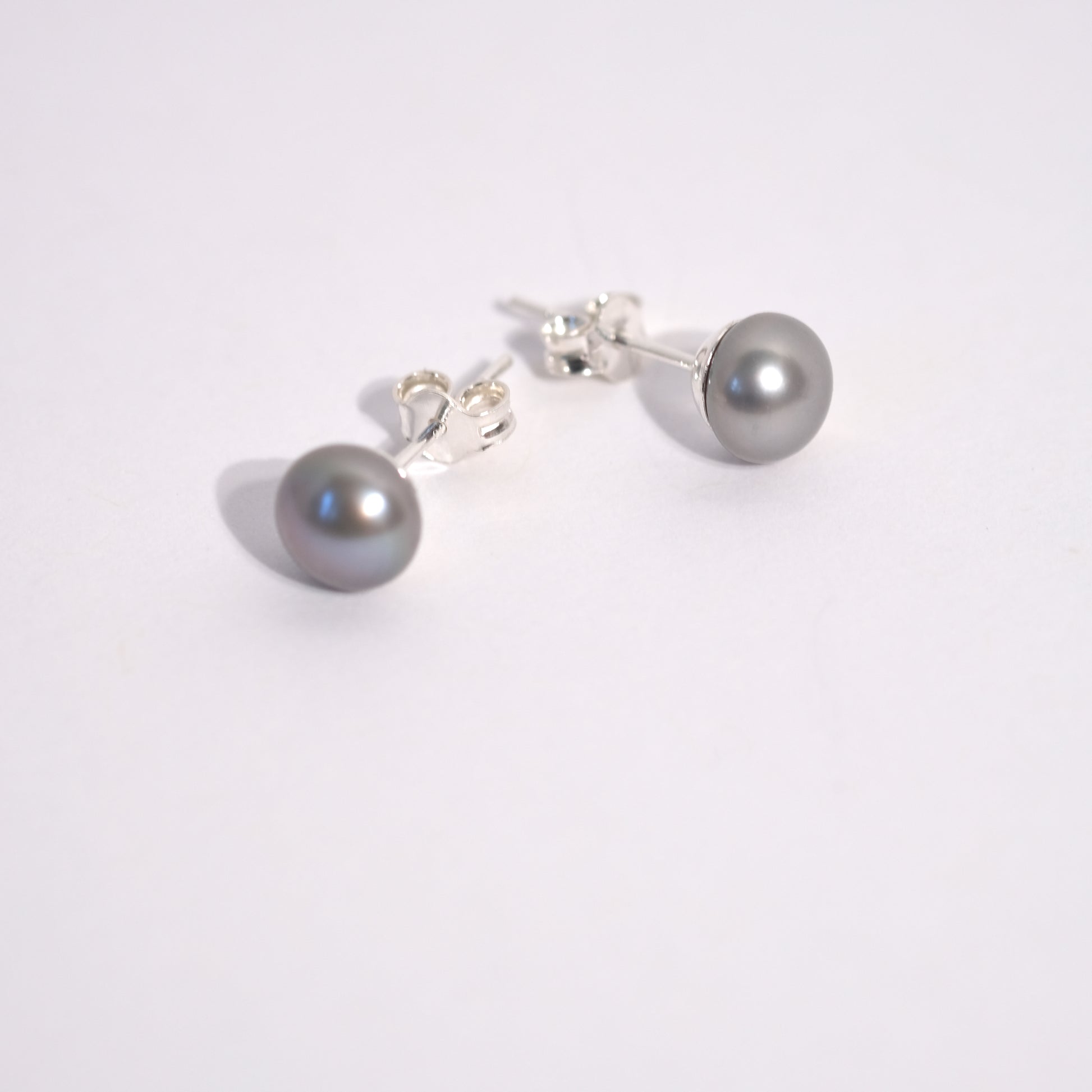 These gorgeous grey button pearls are just different enough to update a classic style. Pearls measure ~7mm. Post and backing are sterling silver.