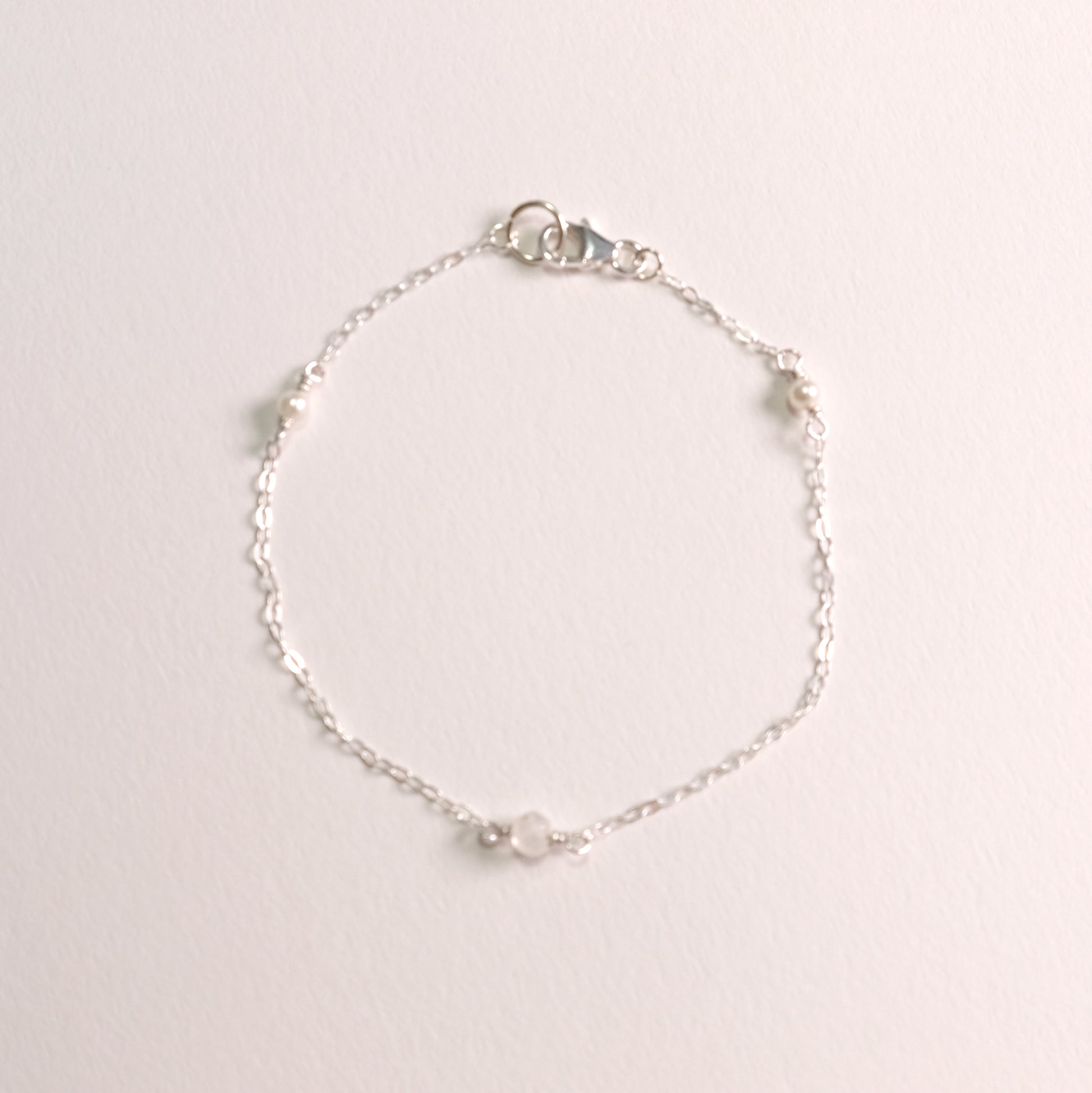 A pair with the Inez Necklace. Pearl and moonstone suspended on a delicate sterling silver chain.