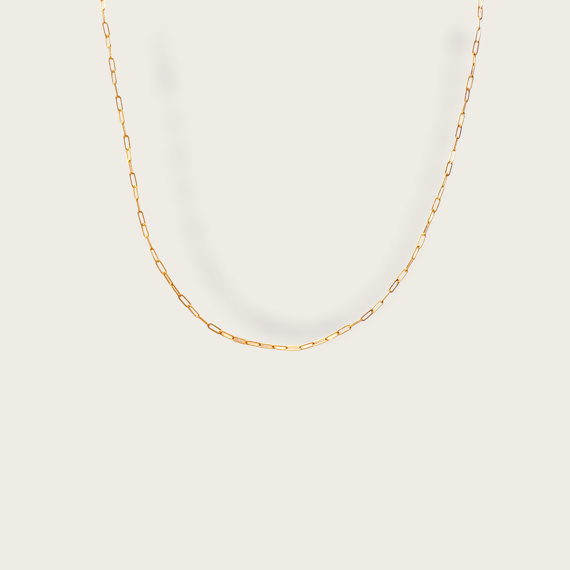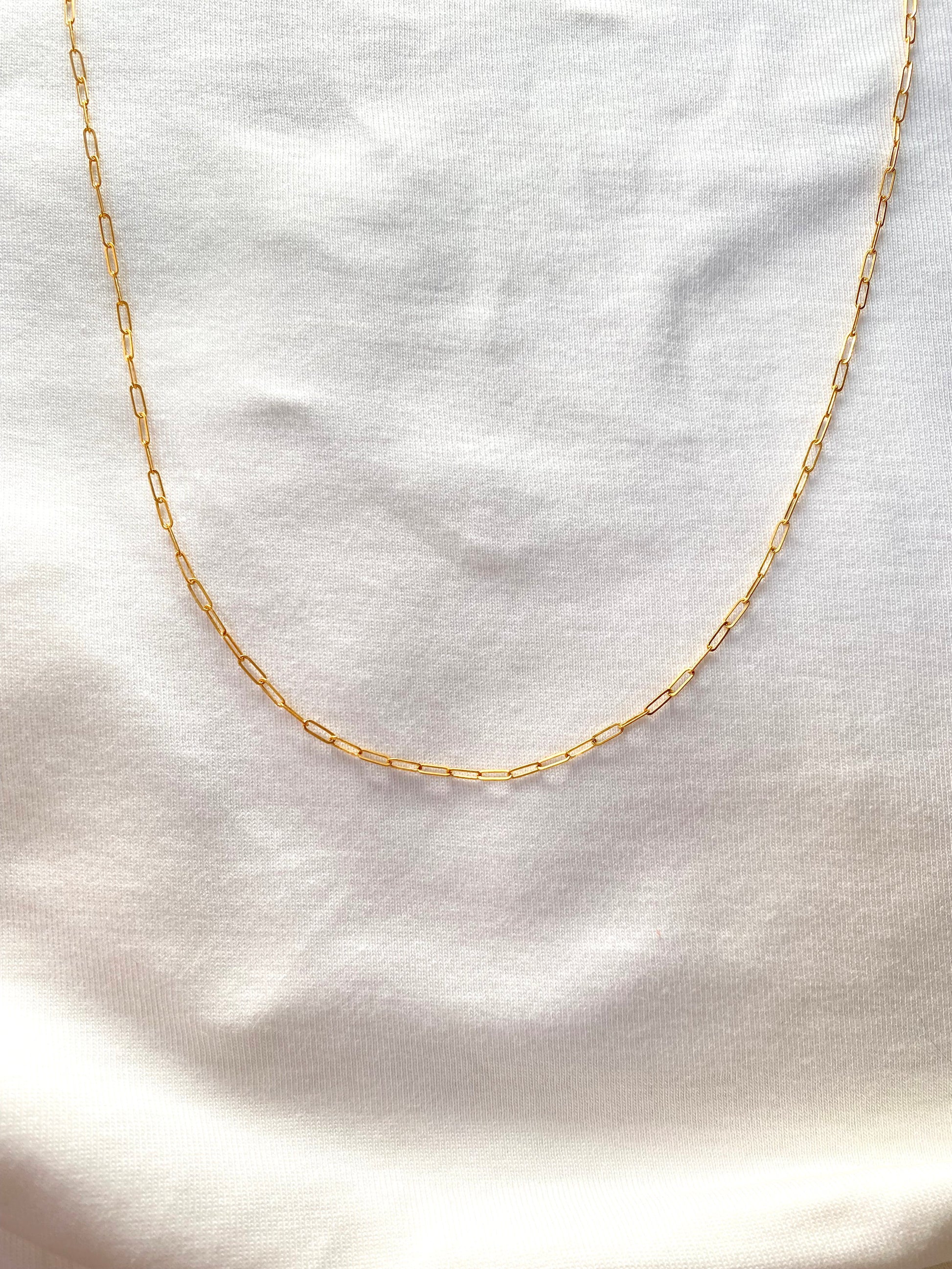 Forever Shelly. 14k gold paperclip chain necklace. Gold plated lobster clasp.
