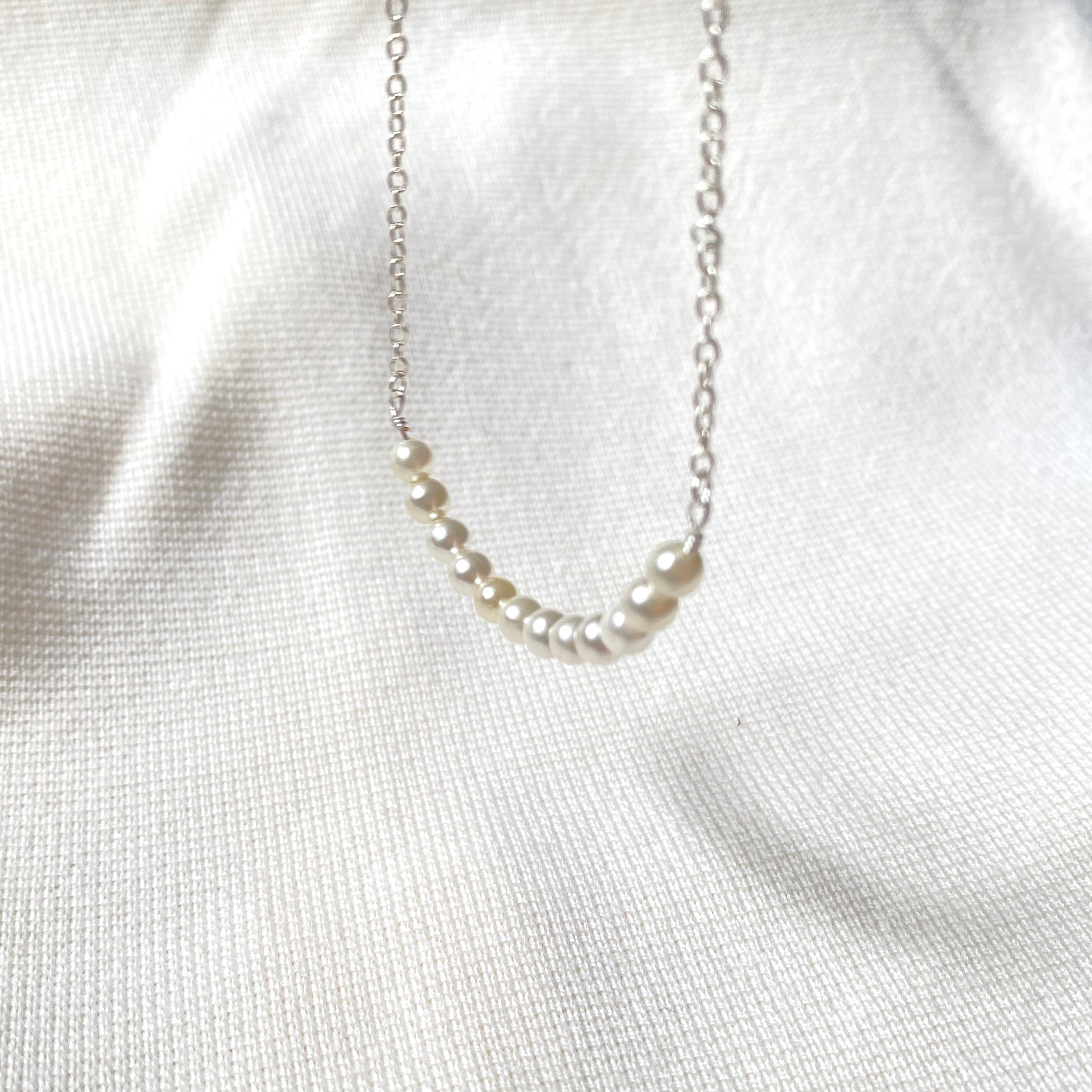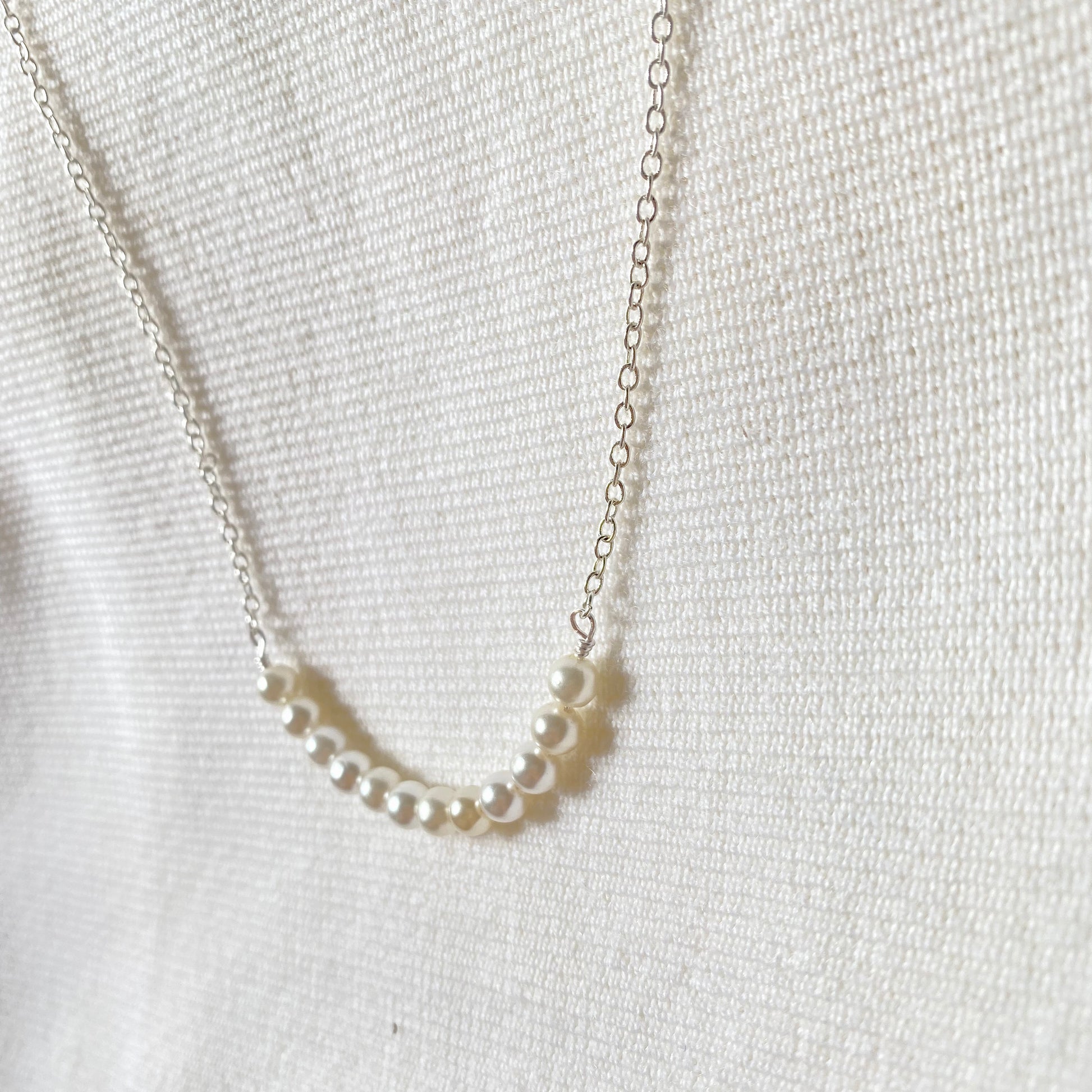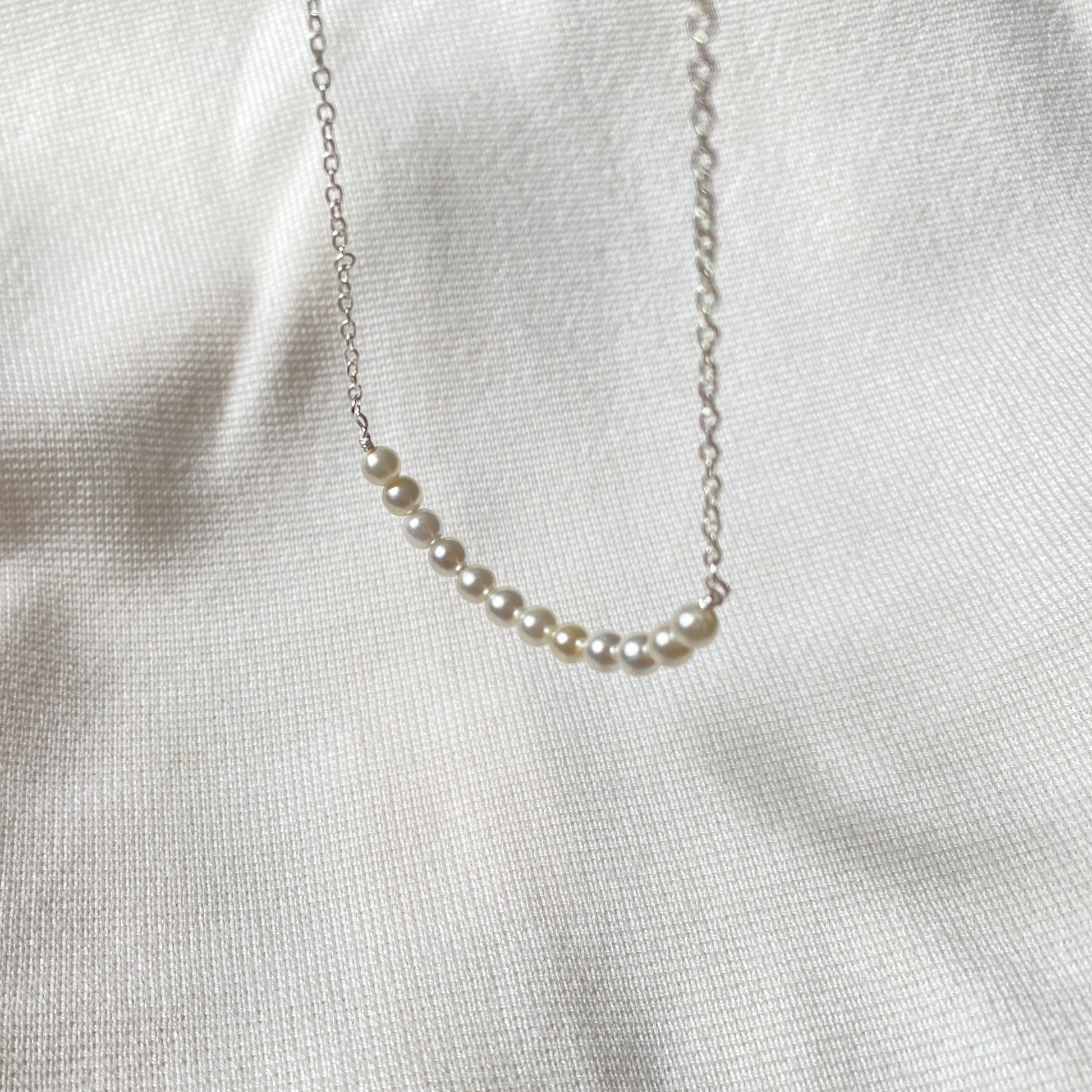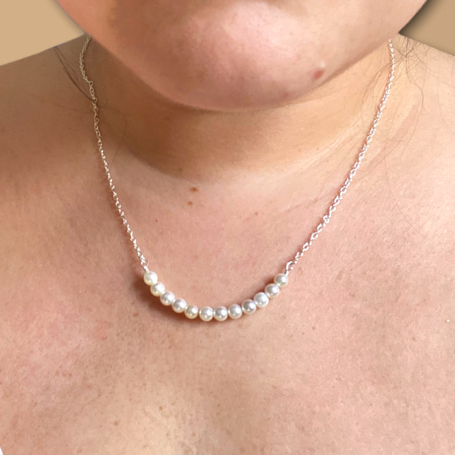 Treat yourself to a scoop or two. Round pearl scoop shape on silver chain. Silver plated lobster clasp.