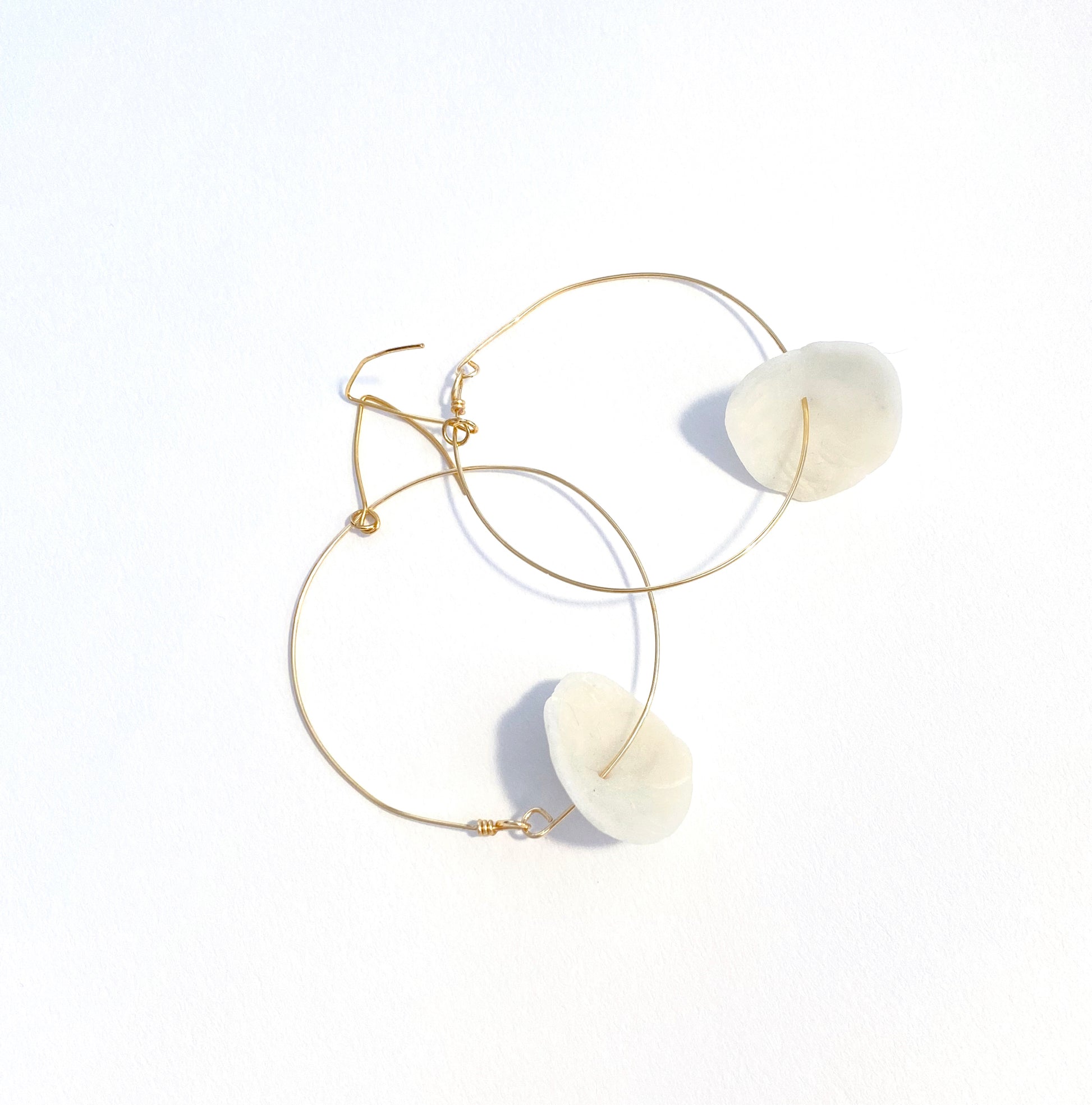 Tender age in bloom. Gold hoops with delicate porcelain clay petals.