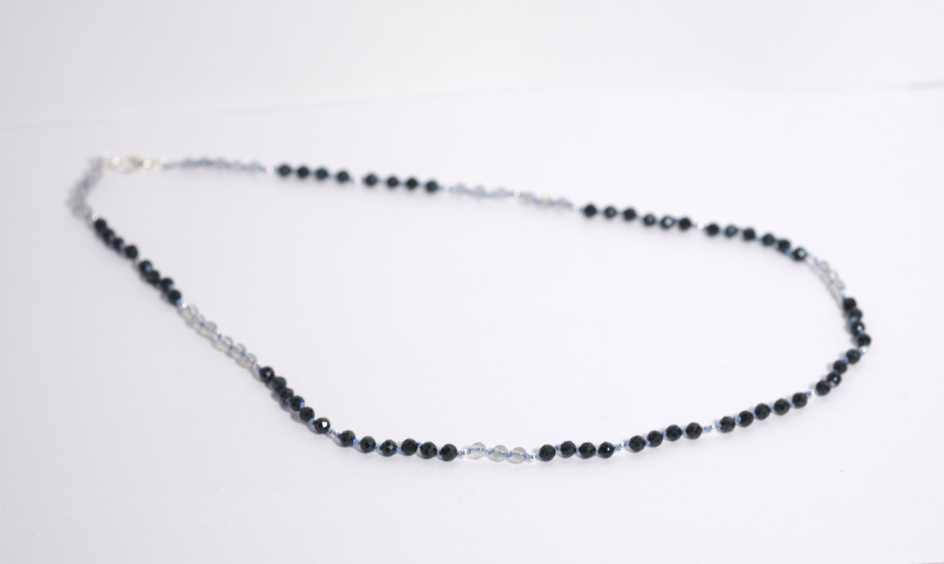Faceted sapphires are interspersed with tiny sterling silver and round labradorite beads. The pictures simply do not do these genuine sapphires justice - they are deep, dark blue and reflect light beautifully.