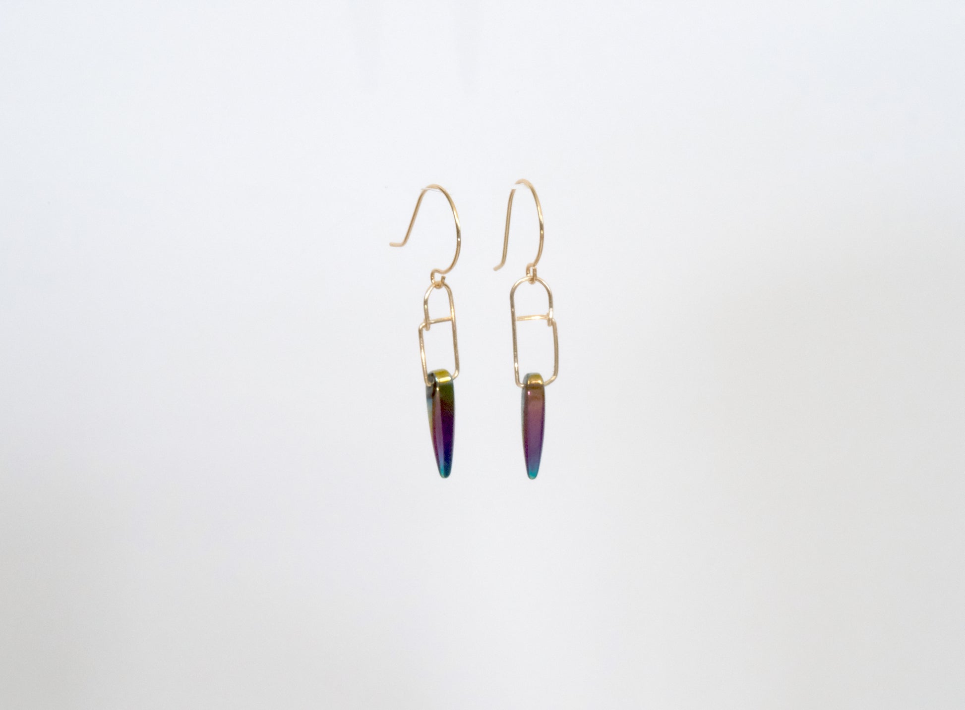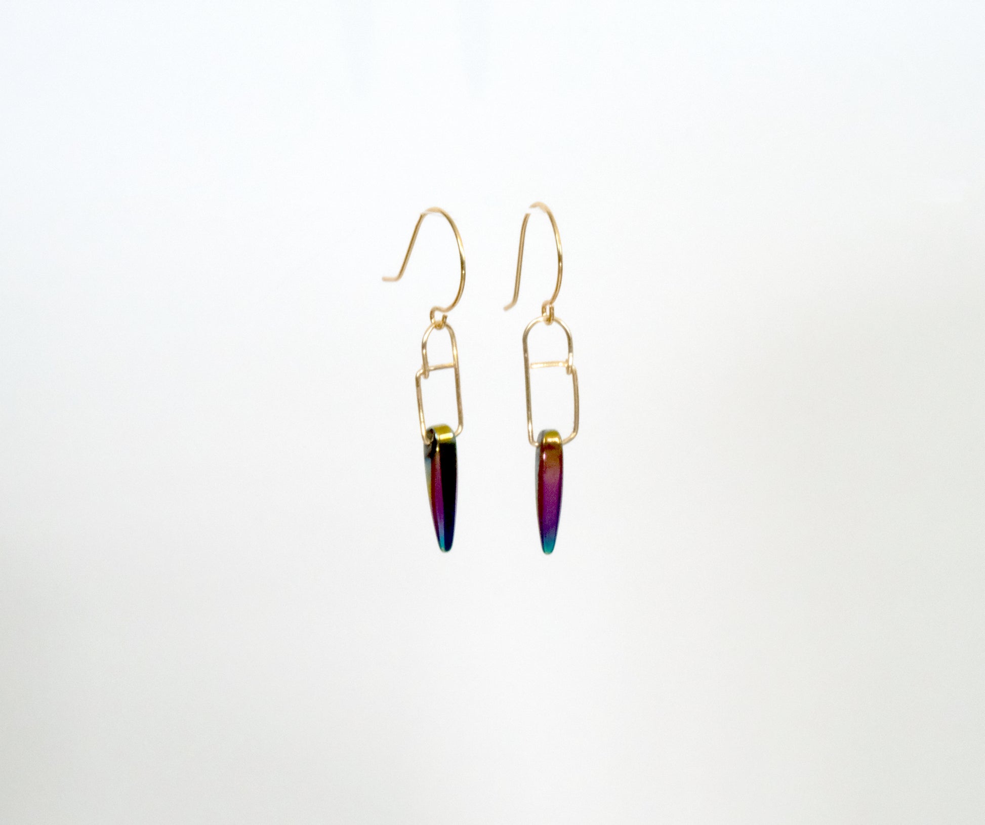 Rainbow hemalyke spikes on gold plated wire. 18k gold plated earring base.