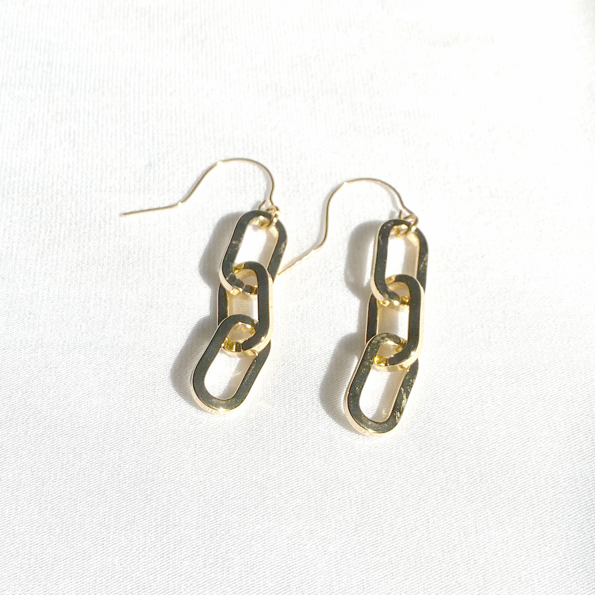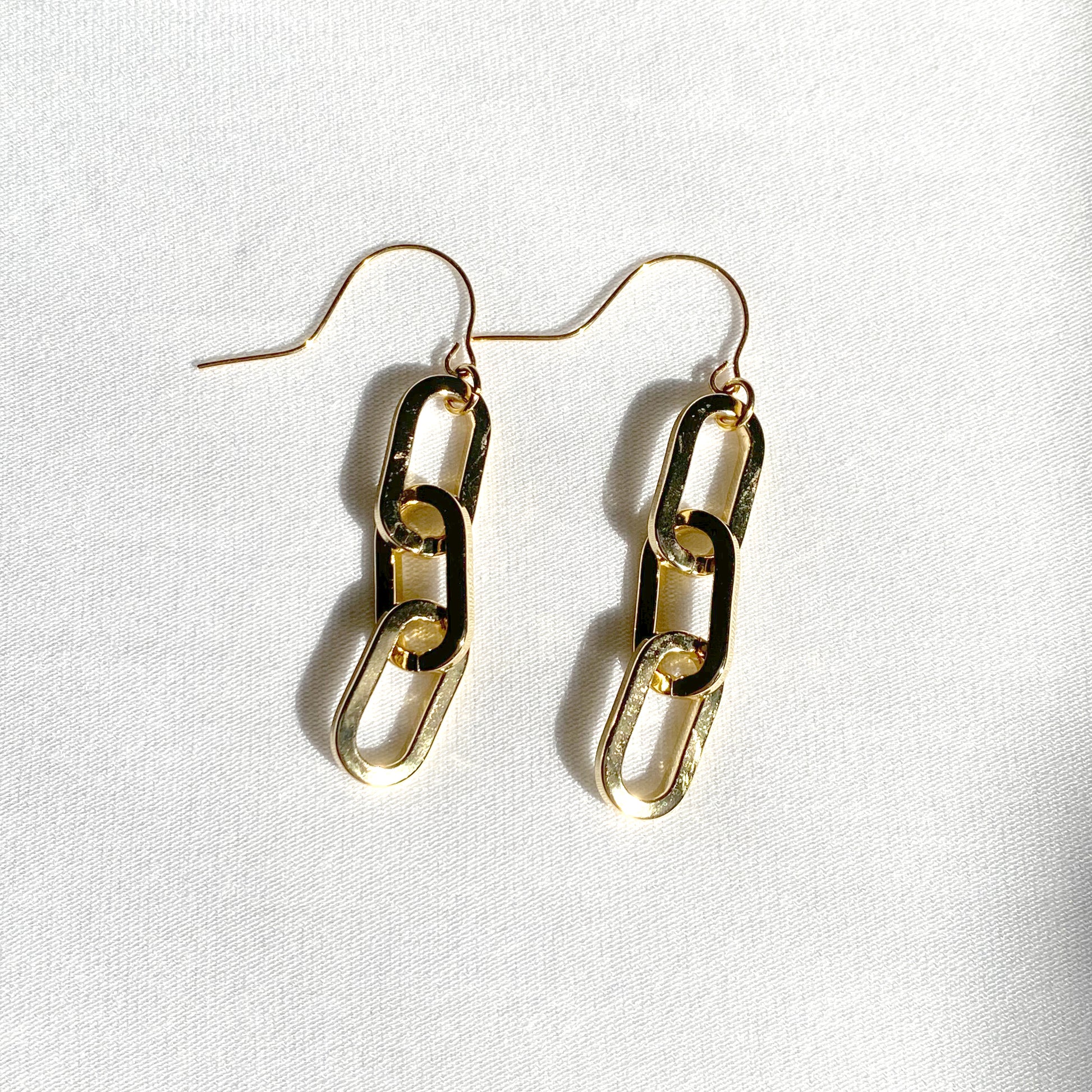 Sometimes you need some shine. Don’t worry what anyone else thinks. 24k gold plated paperclip chain dangling earrings on 18k gold plated brass base.