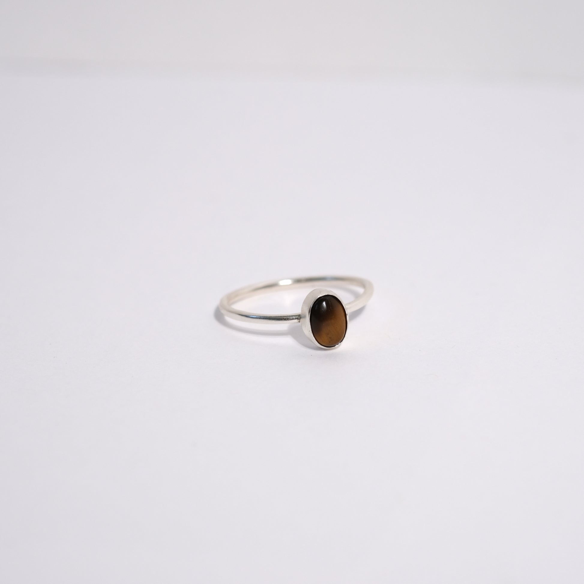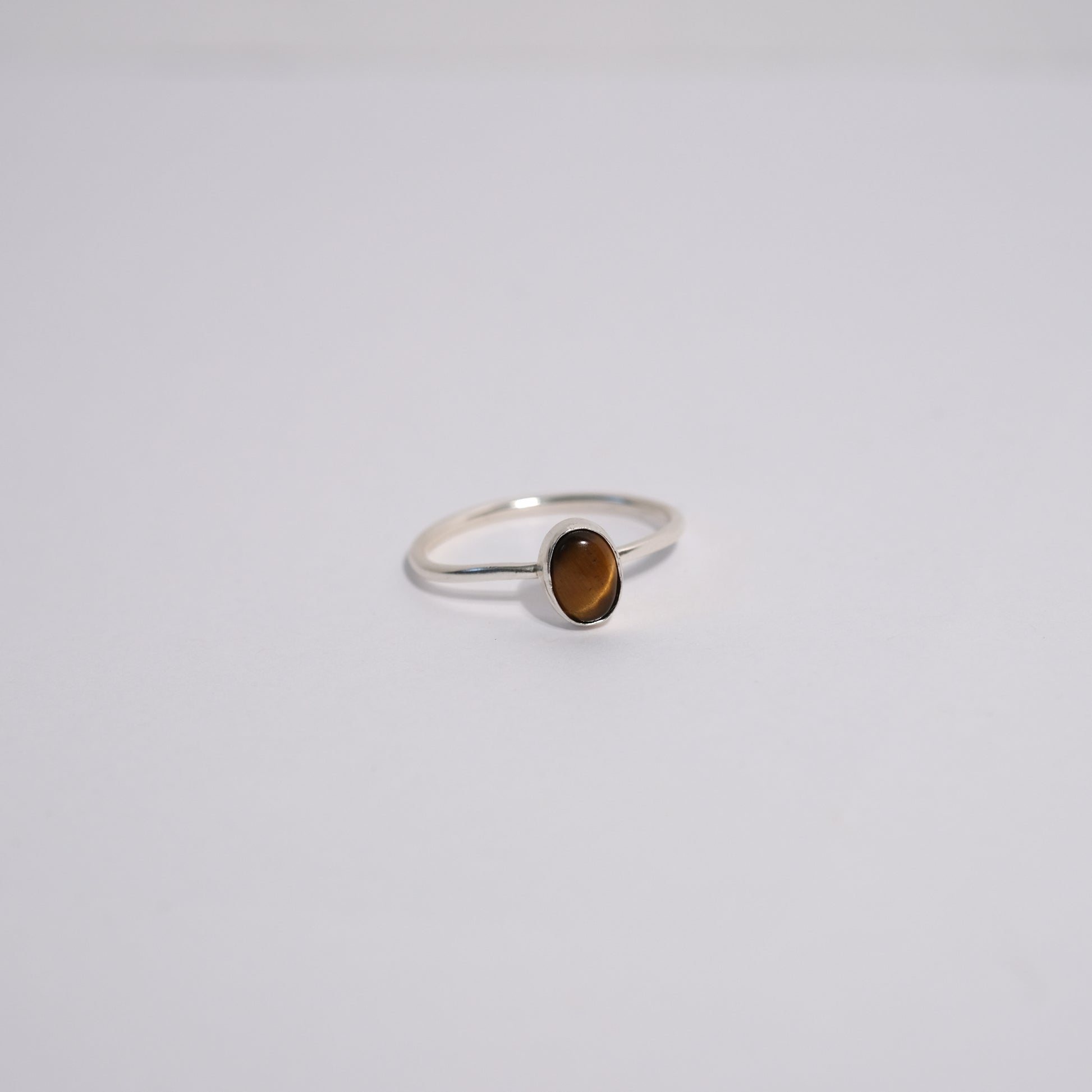 Tigereye has alternating bands of golden-yellow and golden-brown that reveal depth with the light. This ring is sterling silver.