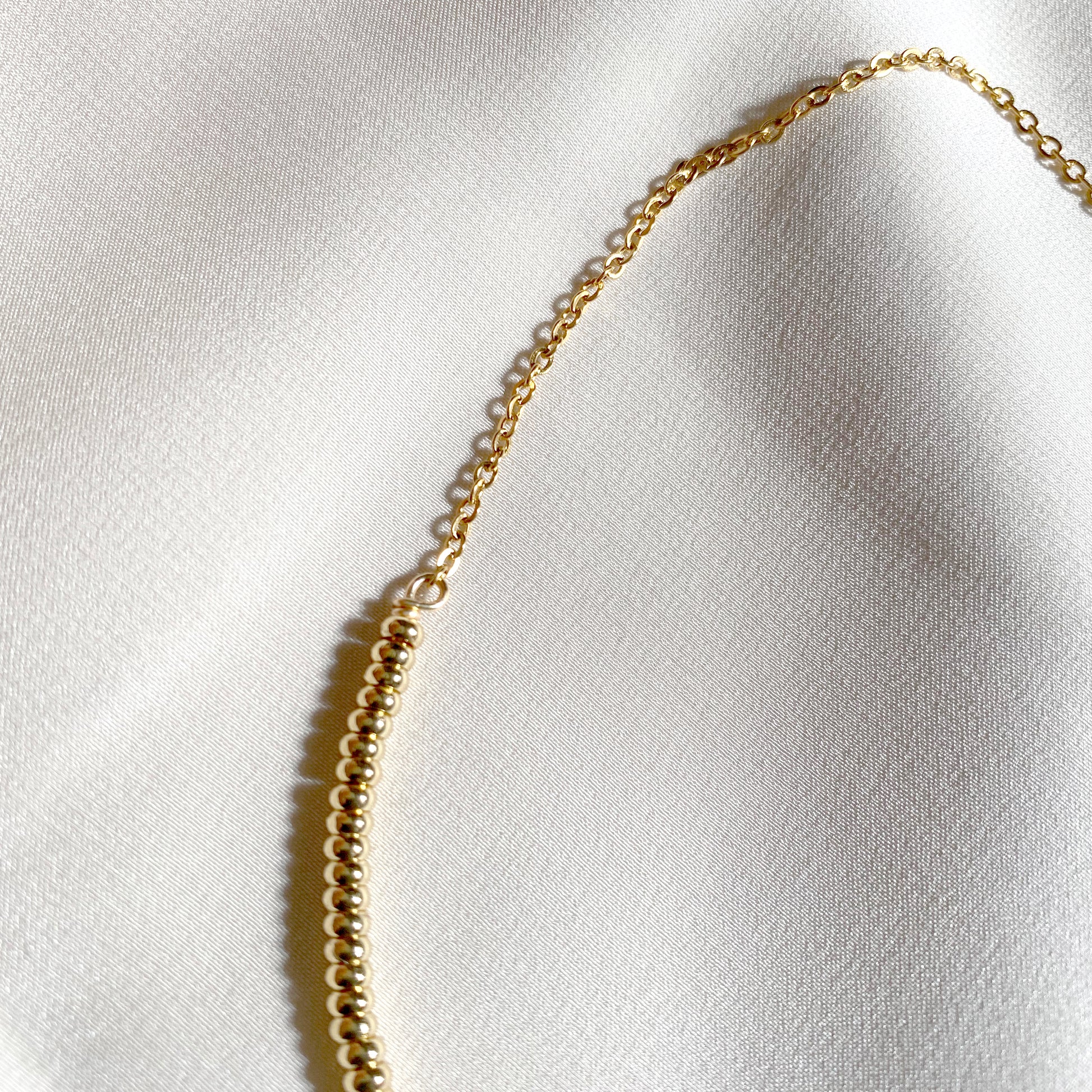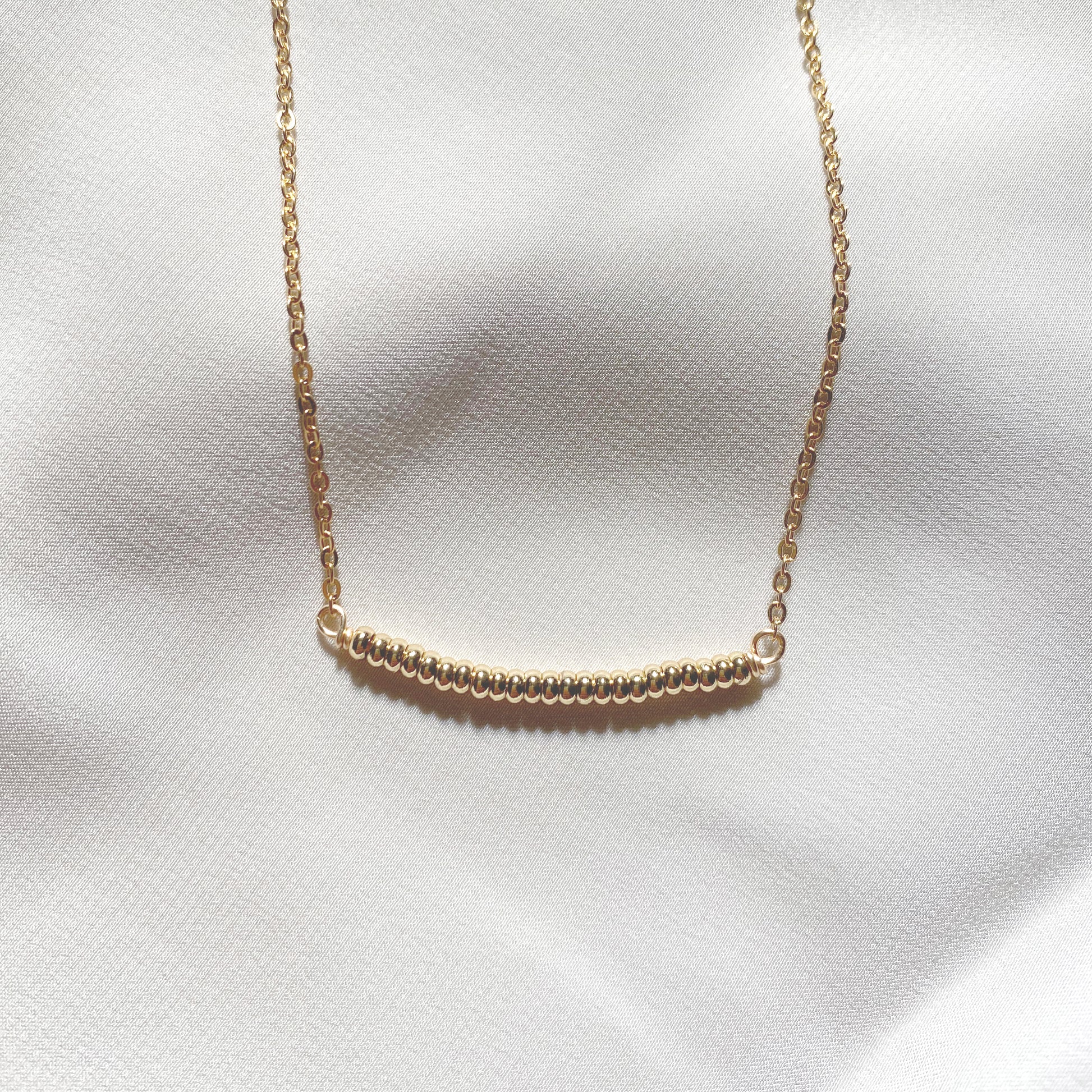 Gold that’s too good to pass up. 18k gold plated bead bar on 14k gold filled chain. Gold plated lobster clasp.